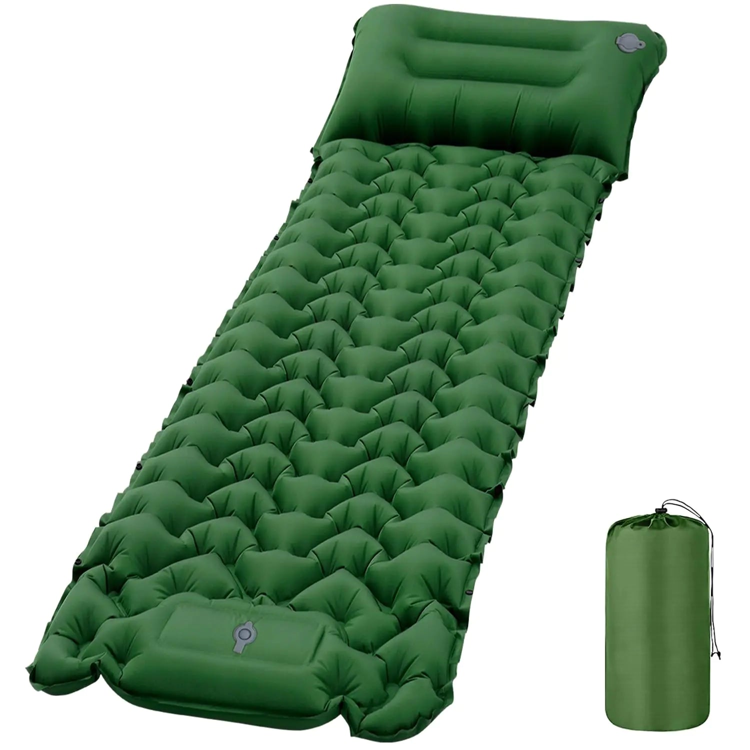 [【50D Durable Ripstop Nylon】Made of lasting 50D nylon and TPU coating 10D more than the old version the camping mattress is waterproof wear-resistant and more durable that is good for every weather condition and terrain. It’s the best friend for camping travel hiking fishing climbing etc. Weight Capacity is powerful enough to support and just enjoy the sleeping pad while using it. 【The Newest Maple-shape Support with Pillow】With the new maple-shape air cells This sleeping pad ergonomically supports your body well and you can sleep well outside. Up to impressive size with 79 X 25 X 3.2 inch the camping sleeping pad keeps your body away from the ground and gives you every comfortable and warm sleeping night. 3.2" thickness and built-in pillow are suitable for every sleeping position. 【Only 30s Foot Pump to Inflate & 1s Deflate】This camping pad has an innovative built-in foot pump that you’re able to stomp on it for only 30-60 seconds to inflate. On the contrast open the deflation port and only need 1 sec to deflate quickly thanks to the latest single-layer air release valve design. With the upgraded design you shall never worry about air leaking and get a comfortable whole-night sleep. It’s time to plan a camping right now! 【Portable Lightweight & Sturdy】The ultralight sleeping mat weighs only 1.6 lbs like a small water bottle and can be folded up to a compact pack as small as 4.3 x 10.6 inch to carry easily. This portable sleeping pad is the most powerful camping gear with the outdoor-grade material fitting in any backpack or suitcase and never be your burden. 【Purchase Two for a Double Bed】 According to make more fun and satisfy your need at your camping trip one side of the sleeping pad is equipped with buttons to be connected with another one. It’s supposed to make a double bed expanding a wider space for you to enjoy.]